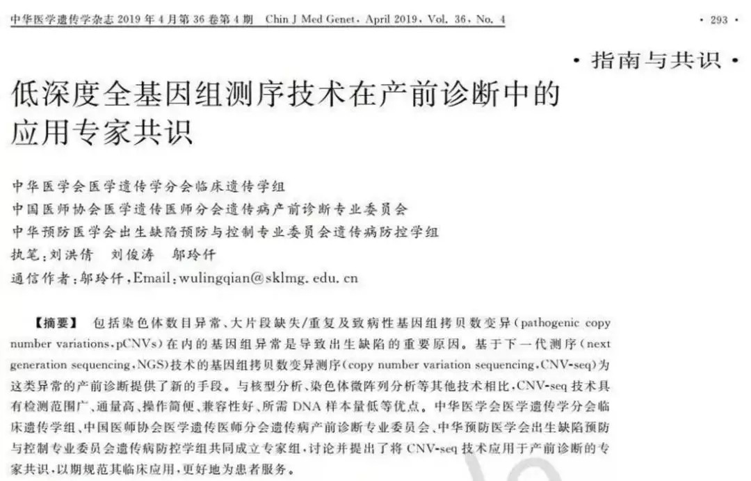 國內(nèi)首個《共識》指出CNV-seq可作為一線產(chǎn)前診斷技術(shù)應(yīng)用于臨床