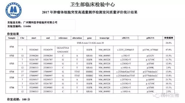 2016年6月17日,國(guó)家衛(wèi)生部臨床檢驗(yàn)中心公布了《2016年全國(guó)臨床檢驗(yàn)室間質(zhì)量評(píng)價(jià)報(bào)告》,廣州精科醫(yī)學(xué)檢驗(yàn)所有限公司首次申報(bào)參評(píng),便以總成績(jī)100%的傲人成績(jī)通過(guò)了“外周血胎兒染色體非整倍體(T21,T18和T13)高通量測(cè)序”第一次室間質(zhì)量評(píng)價(jià)。