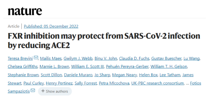 近日,英國劍橋干細胞研究所等團隊在Nature發(fā)表了題為 FXR inhibition may protect from SARS-CoV-infection by reducing ACE2 的文章。該研究顯示,熊去氧膽酸(UDCA)可以通過影響ACE2受體的表達,保護機體免于新冠病毒感染。