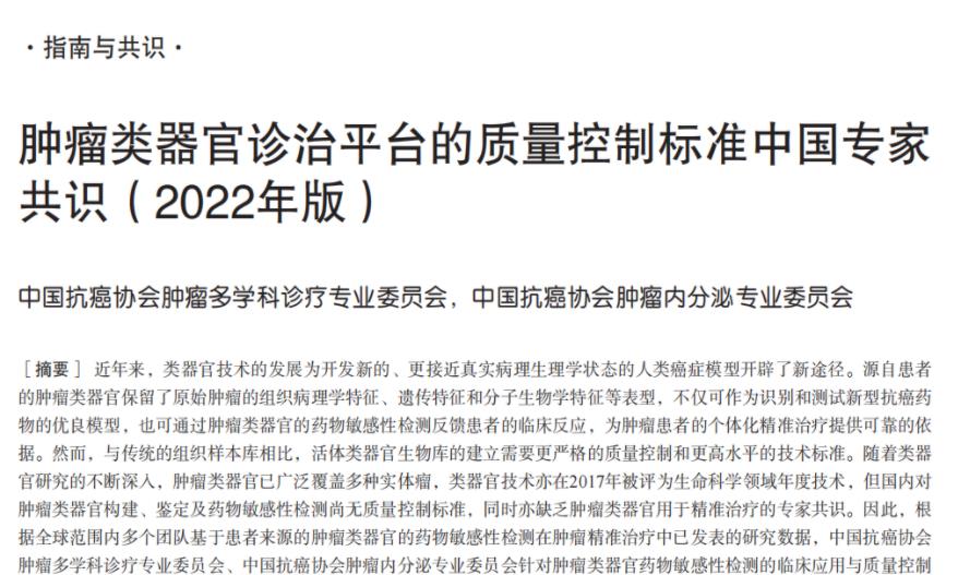 【專家共識】腫瘤類器官診治平臺的質(zhì)量控制標(biāo)準(zhǔn)中國專家共識(2022年版)
